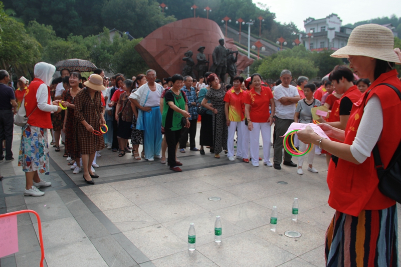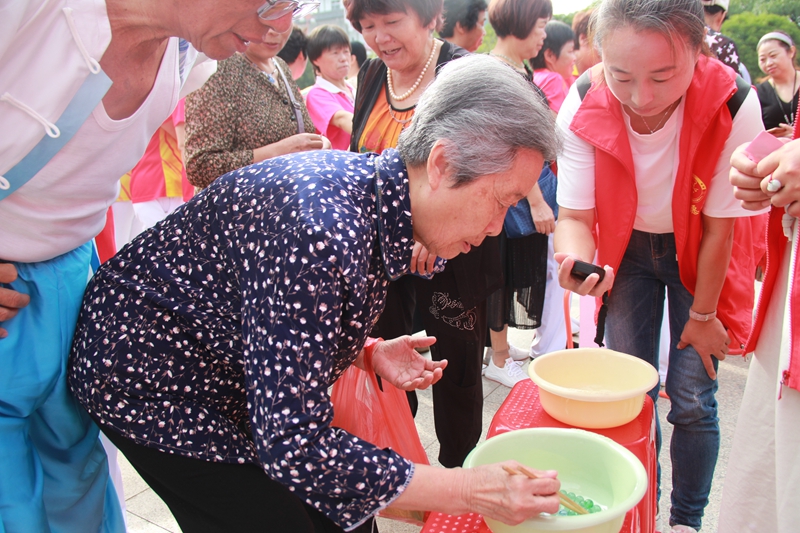 歡慶活動現(xiàn)場一片熱鬧,有老年人組成的太極拳表演、康姿百德健身操以及歌舞表演,夢筆生花民樂團的老年朋友還帶來了器樂合奏,一拉一唱的歌唱組合將整個活動推向高潮。此外,為增加活動樂趣,調(diào)動老年朋友參與活動的熱情,主辦方還準(zhǔn)備了“夾彈珠”“圈套”“丟沙包”等各式自由游戲活動,廣場洋溢著歡樂的氣氛。