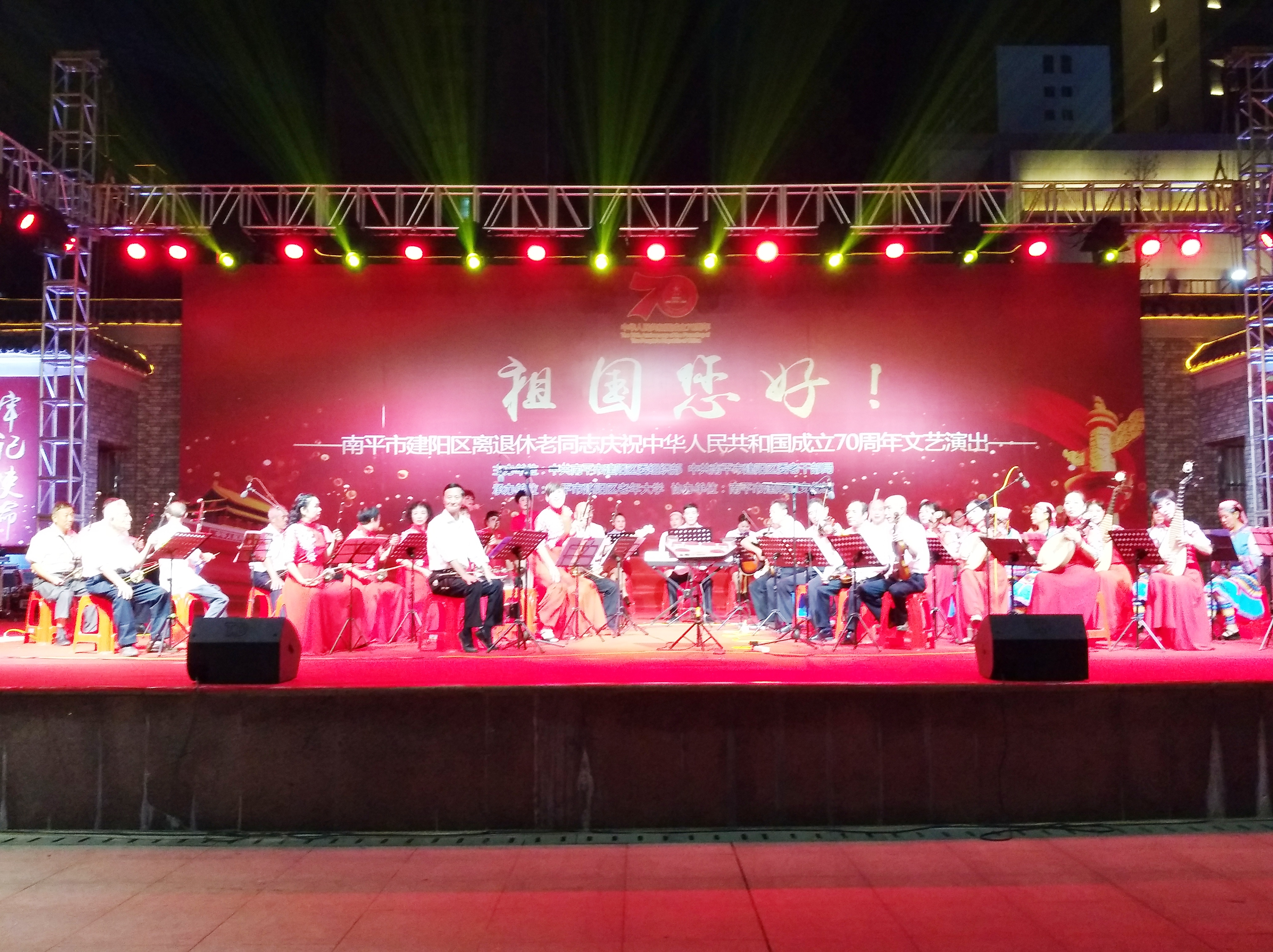 文明風(fēng)10月12日訊(通訊員黃志宏)為慶祝中華人民共和國(guó)成立70周年,展現(xiàn)廣大離退休老同志熱愛(ài)黨、熱愛(ài)祖國(guó)、熱愛(ài)幸福生活的精神風(fēng)貌,10月11日,建陽(yáng)區(qū)舉辦“祖國(guó)您好”離退休老同志慶祝新中國(guó)成立70周年文藝晚會(huì),離退休老同志們用精心排練的舞蹈、歌舞、器樂(lè)演奏、大合唱、戲曲等精彩節(jié)目,向新中國(guó)成立70周年獻(xiàn)禮、為新時(shí)代喝彩。區(qū)領(lǐng)導(dǎo)方丹青、張曉虹、吳政禹等出席晚會(huì)。