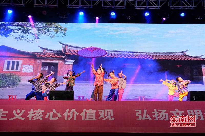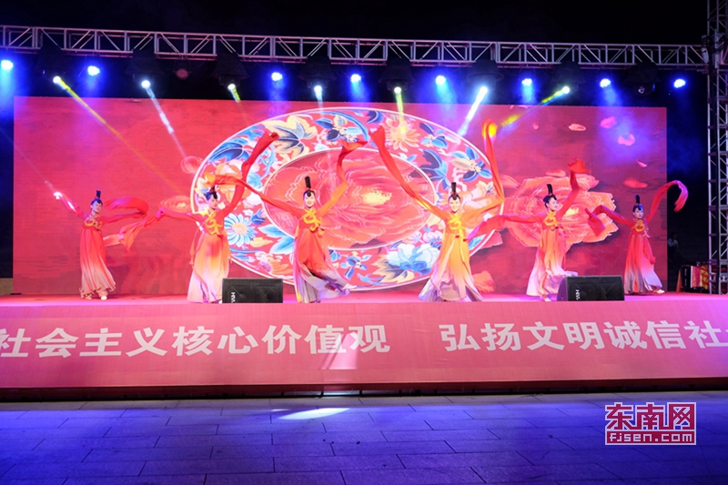 首站巡演活動(dòng)在歌伴舞《領(lǐng)航新時(shí)代》中拉開帷幕。隨后,原創(chuàng)閩南四句《濟(jì)困育才胡云豹》、詩歌朗誦《一件未織完的毛衣》、小品《愛心媽媽》、情景舞蹈《新時(shí)代古鎮(zhèn)記憶》等節(jié)目輪番上演,豐富多彩的演出吸引了許多群眾駐足觀看,贏得陣陣掌聲。