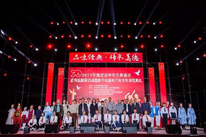 文明風(fēng)11月4日訊(通訊員 韓慧) 11月1日晚,“品味經(jīng)典 傳承美德”2019年福建省中華經(jīng)典誦讀武夷山展演暨南平市新時代好少年頒獎典禮在武夷山市民廣場舉辦。200多名師生用吟、唱、頌等方式,為現(xiàn)場2000多名觀眾上演了一場極具詩情畫意的經(jīng)典誦讀盛宴。