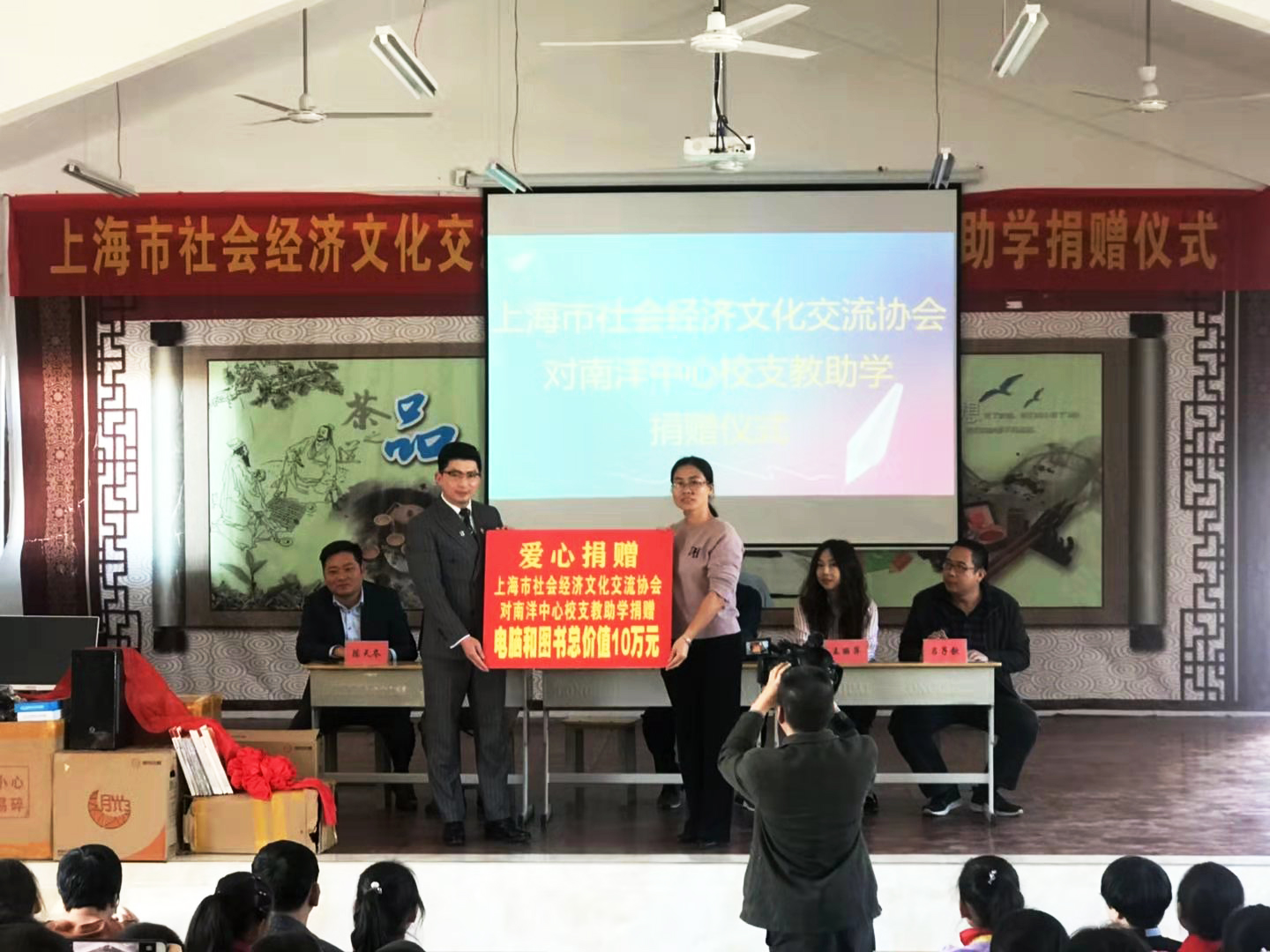 文明風(fēng)11月13日訊 11月11日,上海市社會(huì)經(jīng)濟(jì)文化交流協(xié)會(huì)圖書電腦助學(xué)捐贈(zèng)儀式在漳平南洋中心校舉行。漳平市委常委、統(tǒng)戰(zhàn)部長(zhǎng)陳天彩,上海市社會(huì)經(jīng)濟(jì)文化交流協(xié)會(huì)秘書長(zhǎng)王偉,上海市社會(huì)經(jīng)濟(jì)文化交流協(xié)會(huì)辦公室主任王麗萍,漳平市統(tǒng)戰(zhàn)部副部長(zhǎng)、工商聯(lián)黨組書記傅南峰,龍巖市人民政府駐上海聯(lián)絡(luò)處綜合協(xié)調(diào)中心副主任陳天冬等有關(guān)領(lǐng)導(dǎo)參加本次助學(xué)捐贈(zèng)儀式。