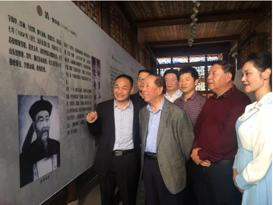 在梁章鉅生平事跡展覽廳,蔣有泉會(huì)長(zhǎng)、劉太品副會(huì)長(zhǎng)久久凝視,深深思索。