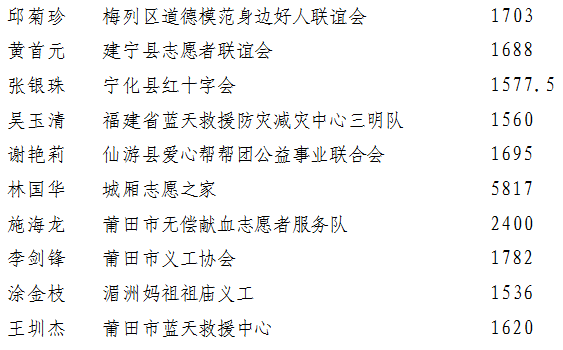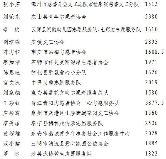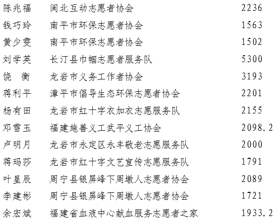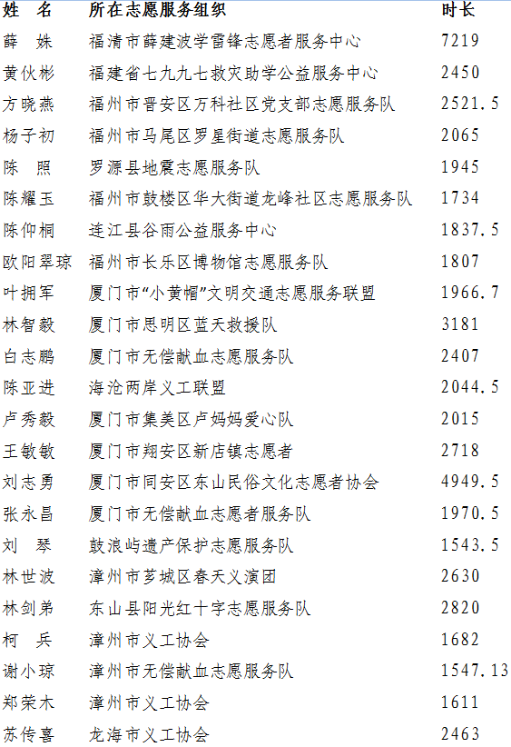 2019年福建省第三批五星級志愿者公示名單