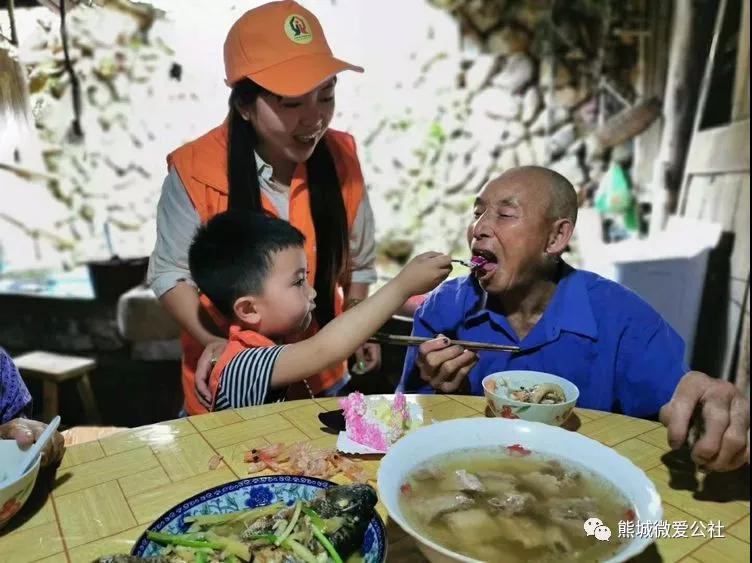 2019年6月16日,政和微公益聯(lián)合會(huì)走入鐵山鎮(zhèn)大紅村慰問困難老人,小志愿者為老人喂上可口的蛋糕 政和文明辦供圖