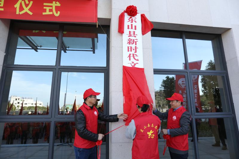 縣委書記洪泰偉為縣新時代文明實踐中心和縣新時代文明實踐志愿服務總隊揭牌 東山縣委文明辦供圖