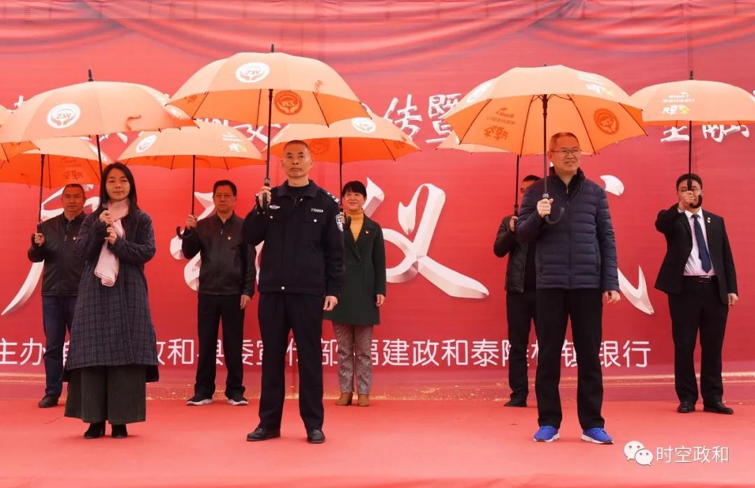 嘉賓領(lǐng)導(dǎo)展示文明傘 政和縣文明辦供圖