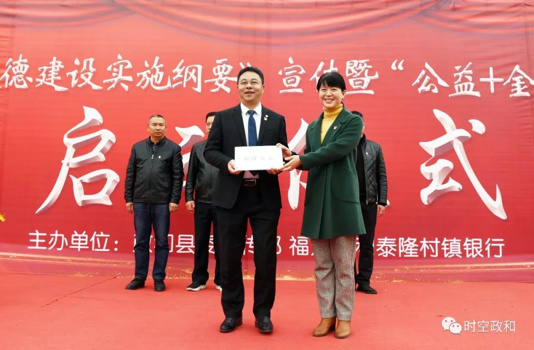 活動還舉行泰隆禮遇志愿貸首發(fā)儀式,成立泰隆義工隊,為全縣13支志愿者隊伍提供專屬貸款產(chǎn)品并授信5億元,主要用于志愿者創(chuàng)業(yè)、個人消費等,鼓勵帶動更多的志愿者投身政和志愿服務(wù)事業(yè),讓志愿服務(wù)成為一種生活形式?,F(xiàn)場還開展了《新時代公民道德建設(shè)實施綱要》、平安“三率”、掃黑除惡、禁毒、網(wǎng)絡(luò)安全宣傳活動。