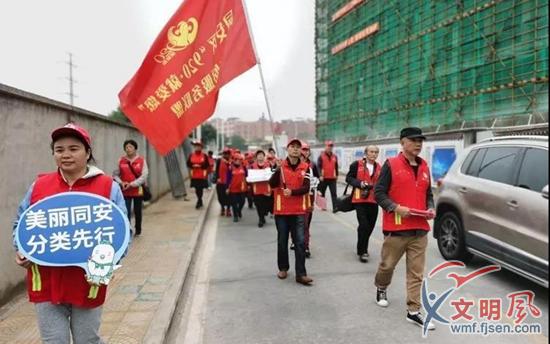 志愿者們沿途宣傳垃圾分類。同安區(qū)委文明辦供圖