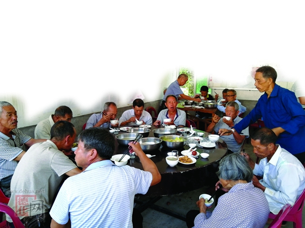 桂陽鄉(xiāng)洪田村老人們圍坐在一起吃愛心午餐。圖源:《瓷都德化》
