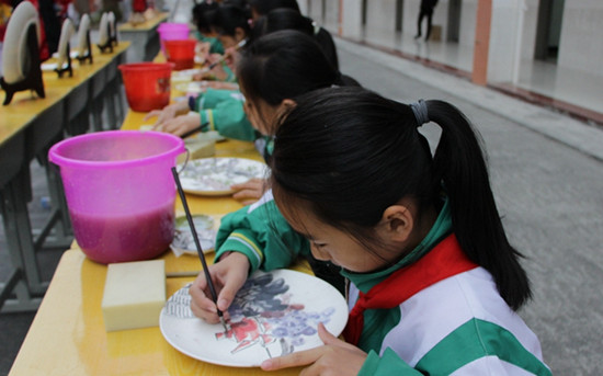 學(xué)生繪制瓷畫。 陳小妮攝