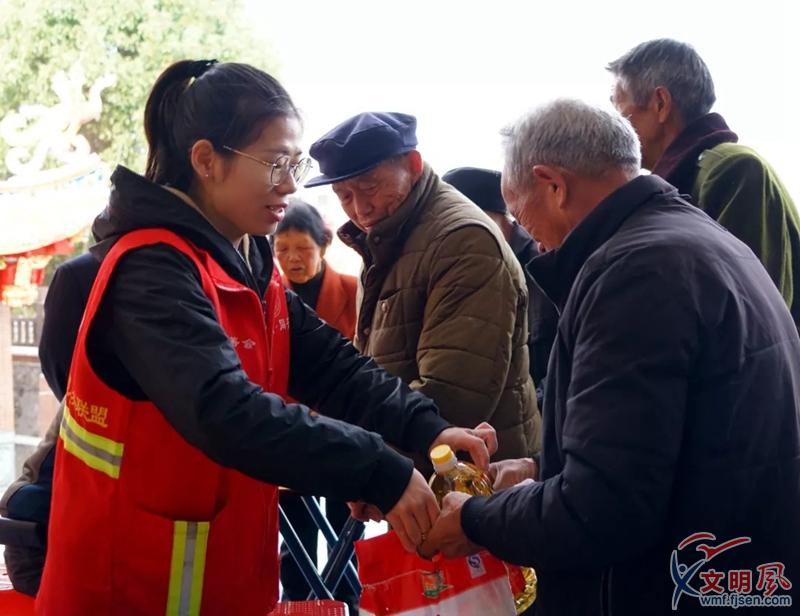 志愿者為老人送上愛心物資。同安區(qū)委文明辦供圖