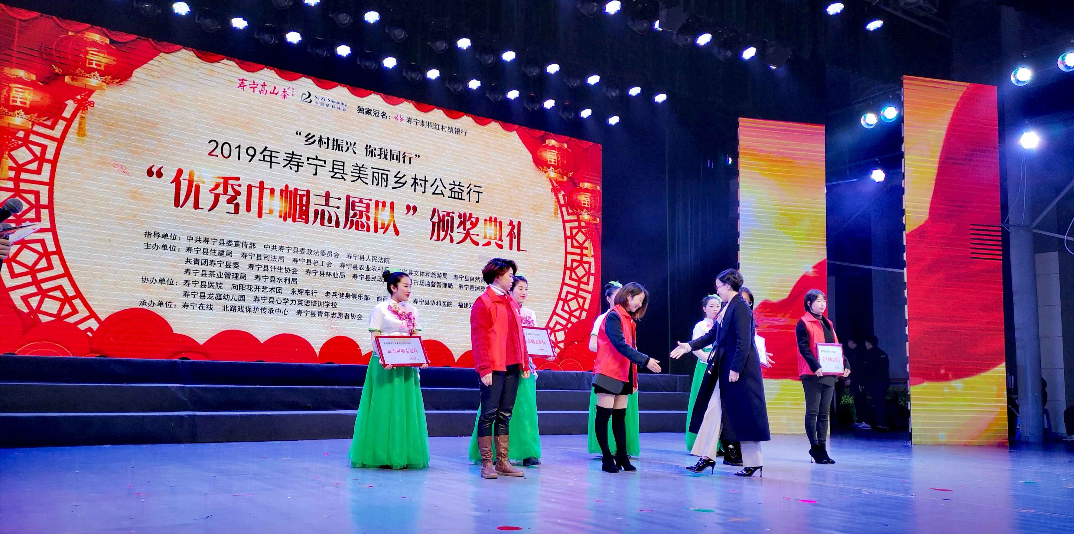 晚會給予了志愿服務(wù)系列先進表彰頒獎。鰲陽巾幗志愿隊、武曲巾幗志愿隊、犀溪巾幗志愿隊,獲得“優(yōu)秀巾幗志愿隊”稱號;鳳陽巾幗志愿隊獲得“最美巾幗志愿隊”稱號。獲得2019壽寧縣“美麗鄉(xiāng)村公益行優(yōu)秀志愿服務(wù)集體”的是:鄉(xiāng)風(fēng)文明宣傳志愿隊、綜治宣傳志愿隊、天平志愿者服務(wù)隊、美麗鄉(xiāng)村建設(shè)志愿隊、普法宣傳志愿隊、總工會先鋒宣傳隊、鄉(xiāng)村振興志愿者服務(wù)隊、文明旅游宣傳志愿隊、美麗國土志愿者服務(wù)隊、巾幗志愿者服務(wù)隊、青年志愿者服務(wù)隊、計生宣傳志愿隊、林業(yè)生態(tài)防護志愿隊、壽寧縣民政局志愿隊、紅盾維權(quán)志愿隊、壽寧縣醫(yī)院志愿隊。獲得壽寧縣第二屆“優(yōu)秀青年志愿服務(wù)集體”的是:壽寧在線慈善會、壽寧縣紅日愛心團、我們社團志愿隊、壽寧縣新華書店志愿隊、壽寧縣教師進修學(xué)校志愿服務(wù)隊、壽寧縣醫(yī)院志愿服務(wù)隊、壽寧縣人大志愿服務(wù)隊、壽寧縣小陸郎公益服務(wù)中心、壽寧一中志愿隊、壽寧縣青少年之家志愿服務(wù)隊。