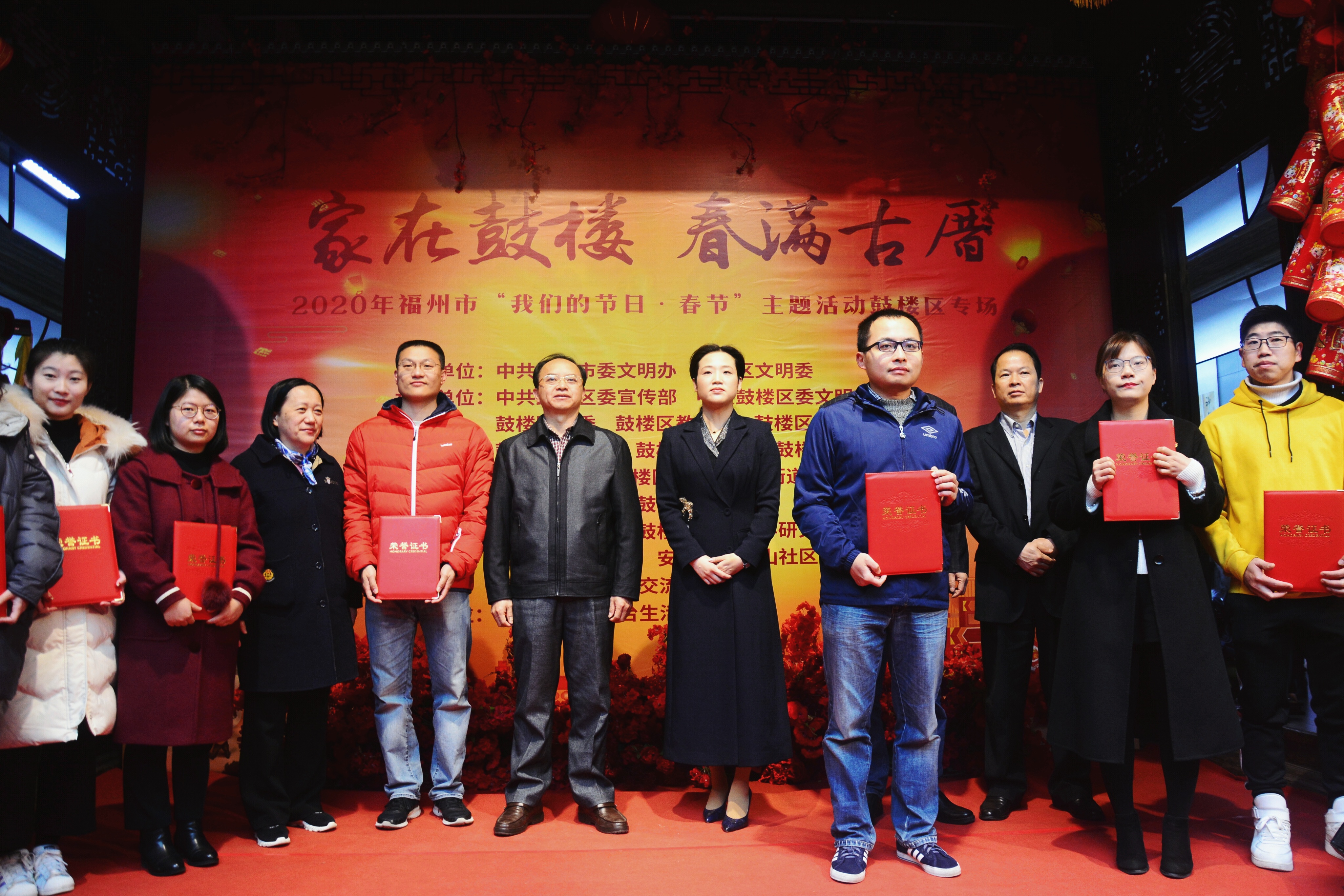 為弘揚(yáng)優(yōu)秀品格的精神力量,崇文重教的優(yōu)秀傳統(tǒng),大力培育和踐行社會主義核心價值觀,活動現(xiàn)場邀請了凡人善舉微視頻(圖片)有獎?wù)骷顒荧@獎作者代表、“讀書明星”“書香人家”代表和2019年鼓樓好人到現(xiàn)場觀禮,并由省、市、區(qū)領(lǐng)導(dǎo)為他們表彰,并獻(xiàn)上新春的慰問。