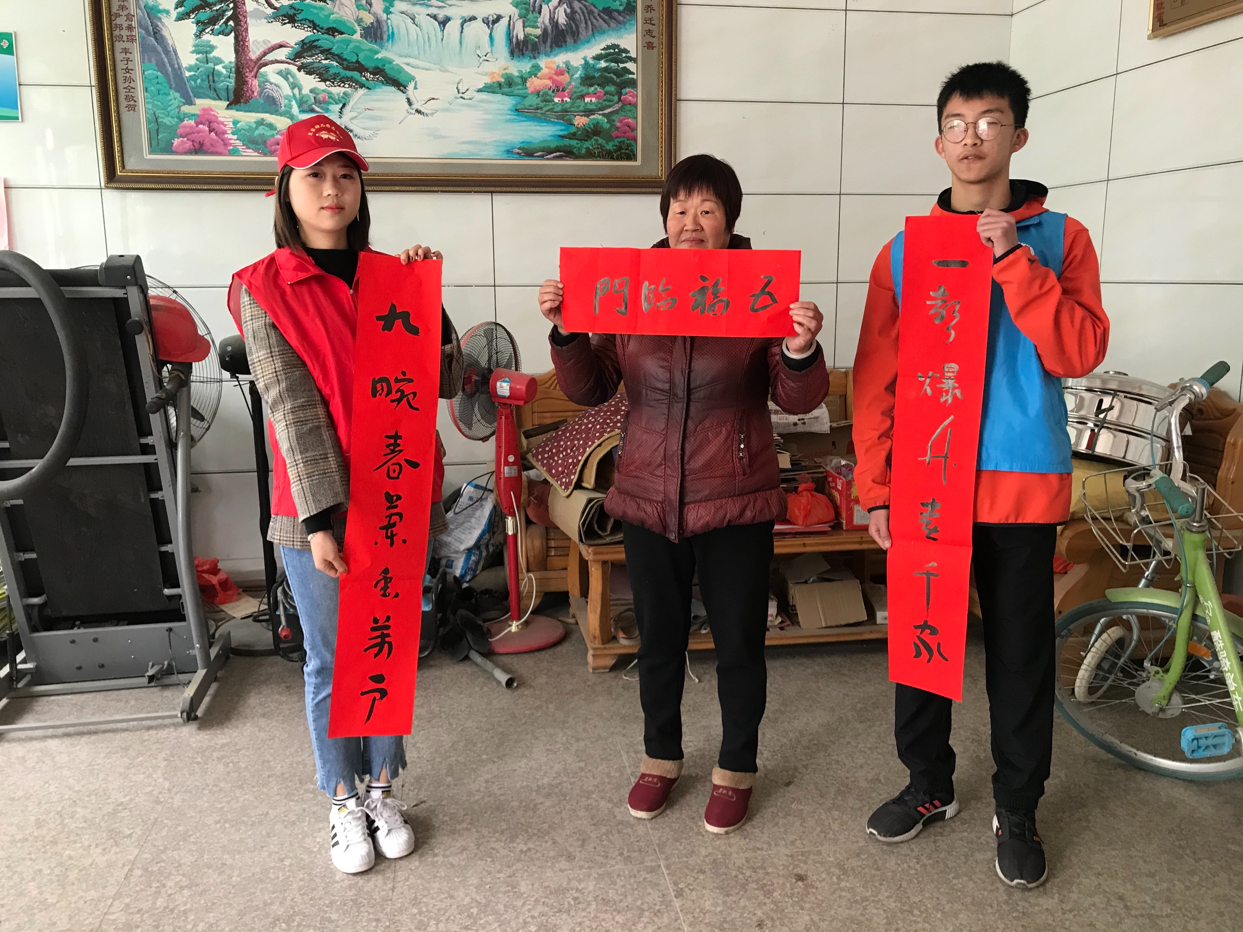 志愿者們?yōu)槔щy家庭送上文聯(lián)義寫春聯(lián)送上新春祝福 福建七九九七救災助學公益服務中心供圖