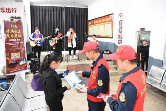當天活動現(xiàn)場,應急藥品、食品、開水等便民服務物資有序擺放,青年志愿者面對過往司乘人員、車站旅客有序開展引導咨詢、秩序維護、應急救援、行李搬運等工作,并分發(fā)公路法律法規(guī)、春運宣傳手冊等。同時,活動方還邀請小蘇打吉他社在永春汽車站候車室開展“暖心駐唱”志愿服務,有效緩解車站旅客候車疲勞感,為過往司乘人員、車站旅客提供全方位服務。