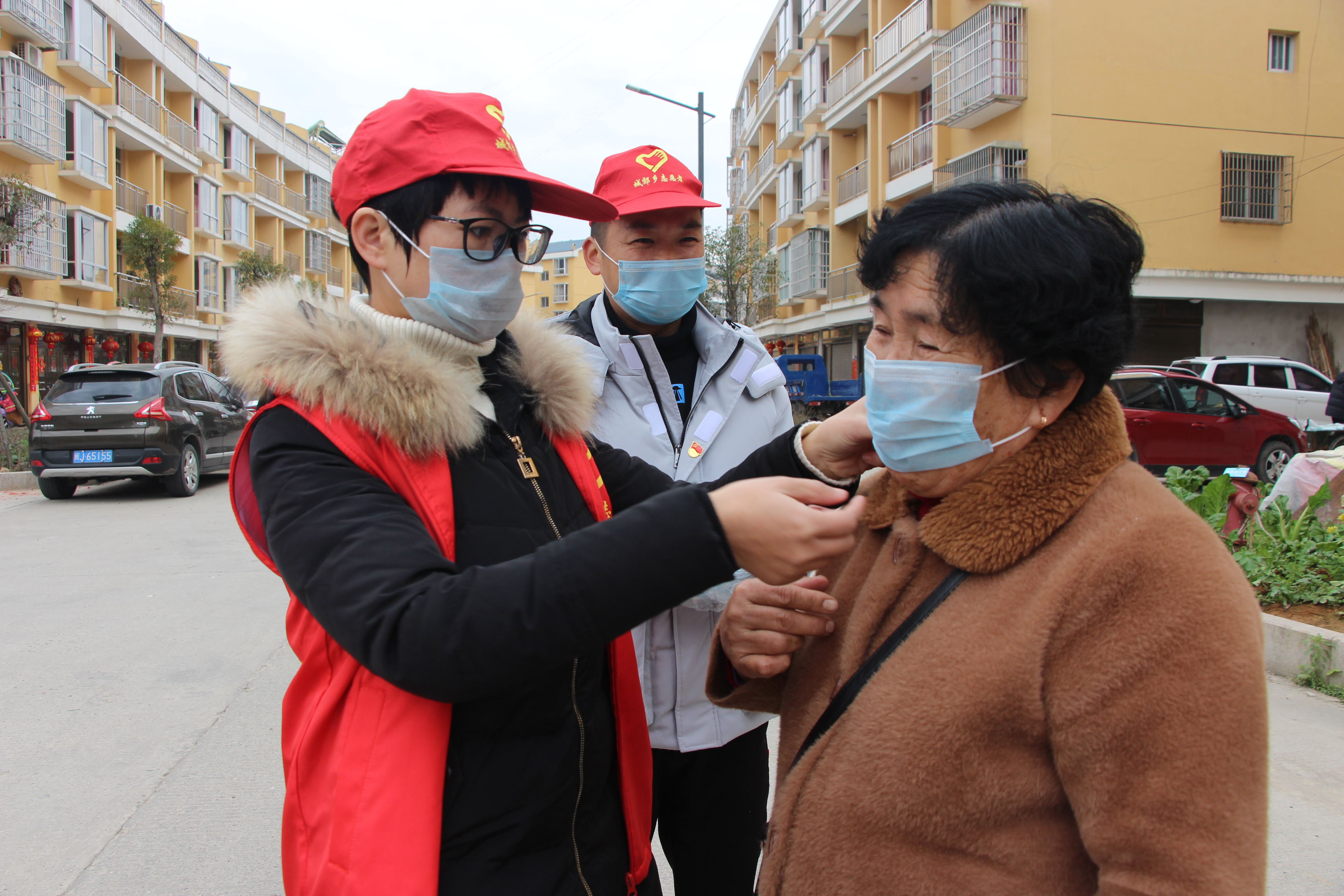 指導(dǎo)群眾規(guī)范佩戴口罩 柘榮文明辦 供圖