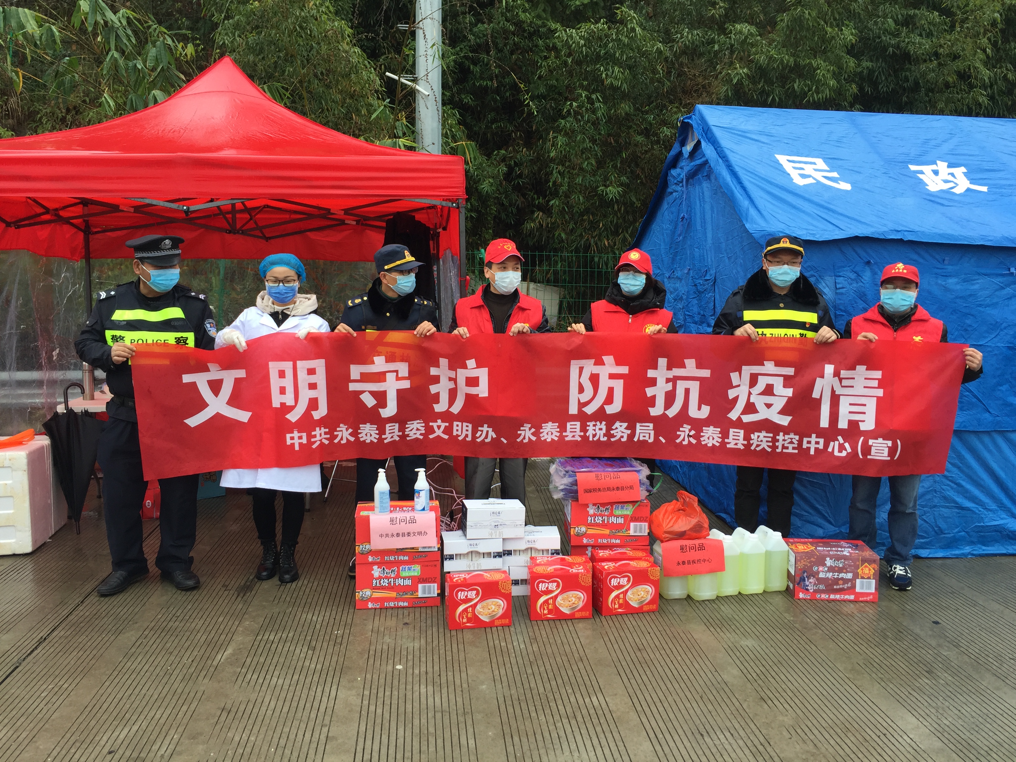 文明風2月5日訊 疫情就是命令,防控就是責任。這場沒有硝煙的戰(zhàn)斗已持續(xù)10來天,永泰縣上千名一線的工作人員主動取消休假返回工作崗位奮戰(zhàn)至今從不喊苦叫累。2月4日上午,中共永泰縣委文明辦聯(lián)合永泰縣稅務局、永泰縣疾控中心前往永泰東高速口、永泰西高速口、永泰縣融媒體中心對疫情防控一線人員進行慰問,同時捐贈了方便面、糕點、牛奶等慰問品近百箱,以及雨衣、消毒液等急用物品76件。