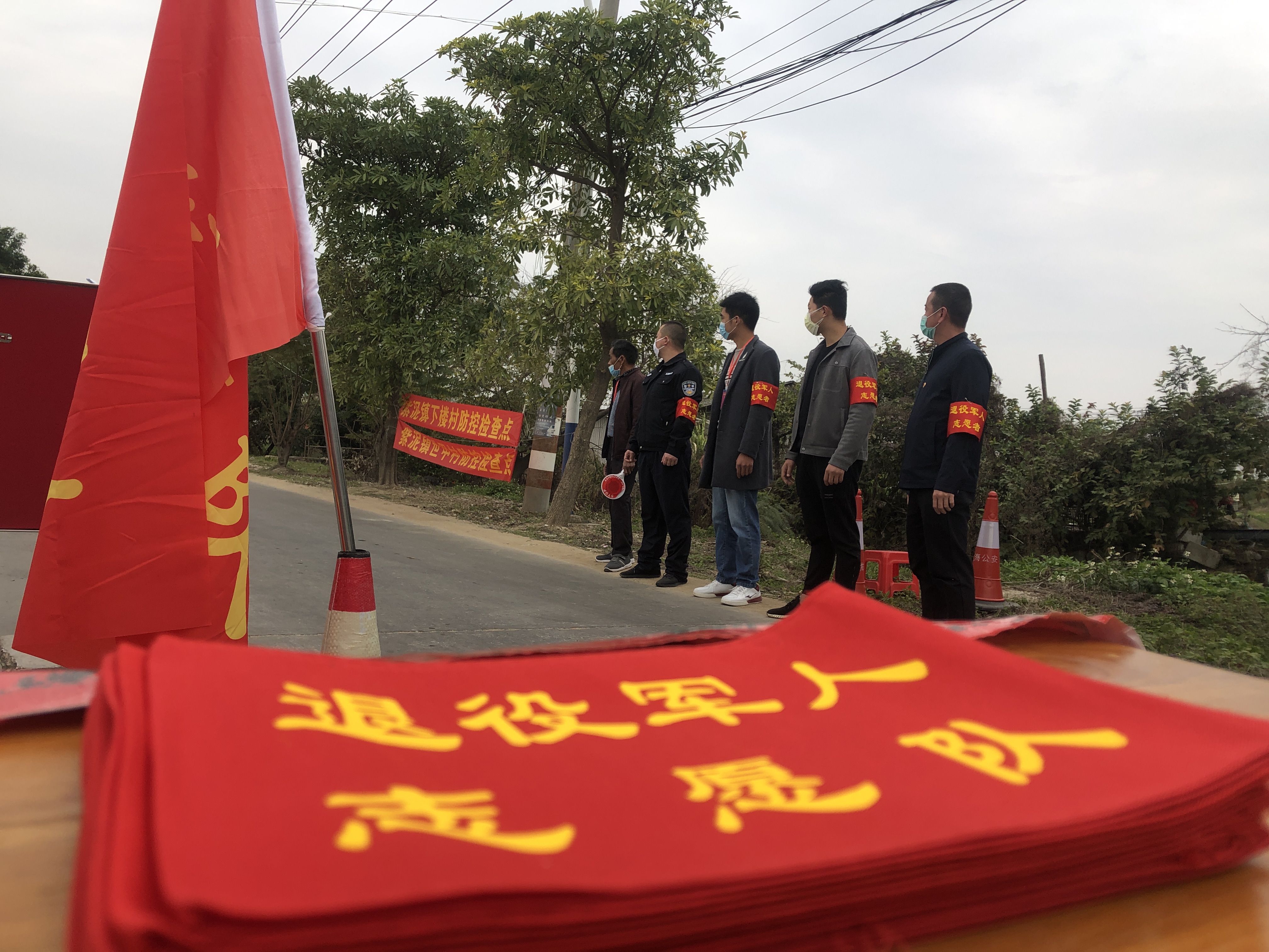 紫泥鎮(zhèn)退役軍人志愿者在執(zhí)勤崗檢查過往車輛 龍海市退役軍人事務(wù)局供圖