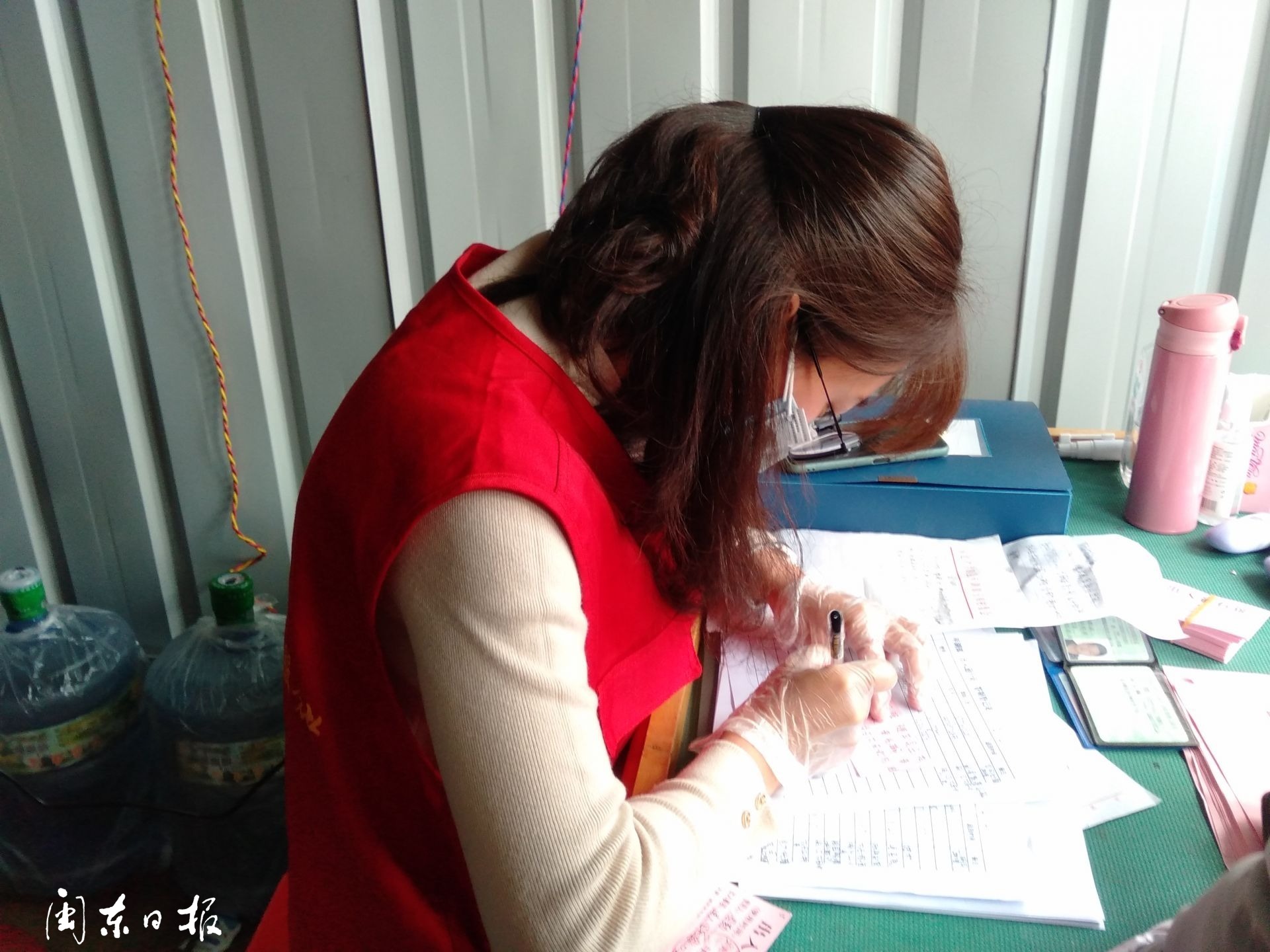 “您好,請配合我們測量體溫。”2月17日,在古田縣平湖鎮(zhèn)賴墩村入口疫情檢測點(diǎn),身穿紅馬甲的志愿者逐一測量過往人員的體溫并作好登記。
