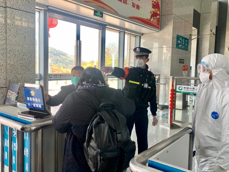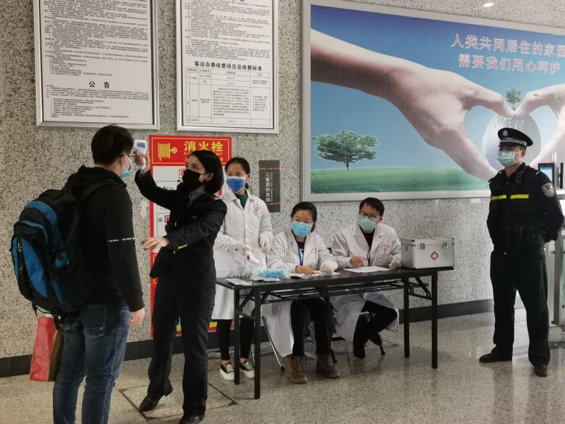 協(xié)助客運(yùn)、醫(yī)護(hù)人員做好體溫測(cè)量 閩清北車站派出所供圖