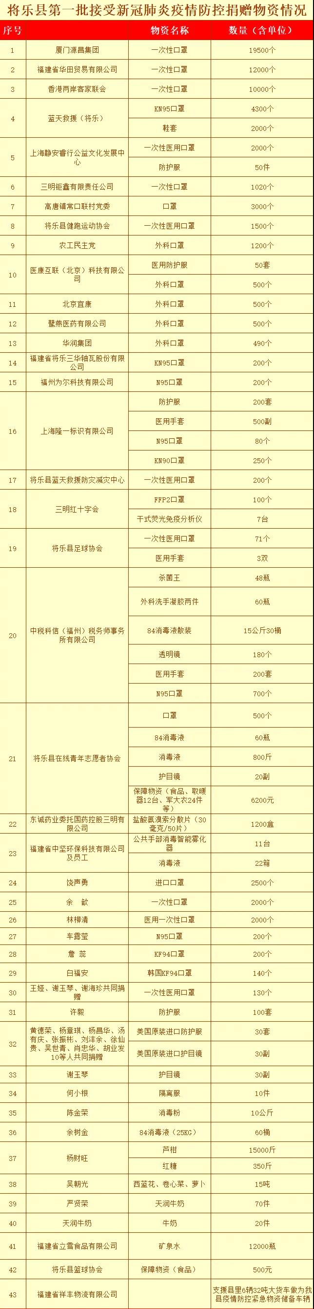將樂縣第一批接受新冠狀病毒肺炎疫情捐贈(zèng)情況 將樂縣文明辦供圖