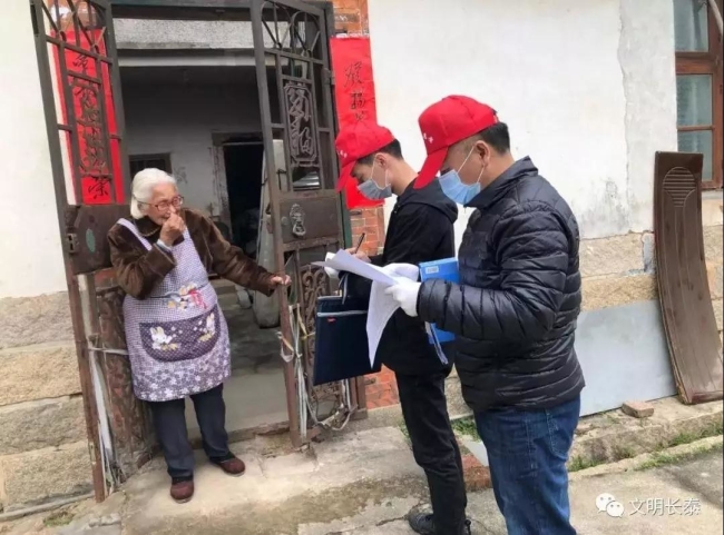 片區(qū)衛(wèi)生責(zé)任單位干部志愿者入戶參與排查 長泰縣委文明辦、漳州文明網(wǎng)供圖