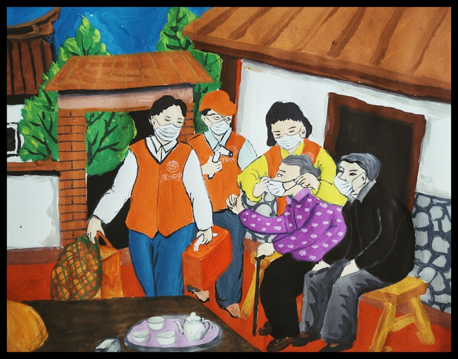 《抗疫情,送溫暖》陳巡 繪