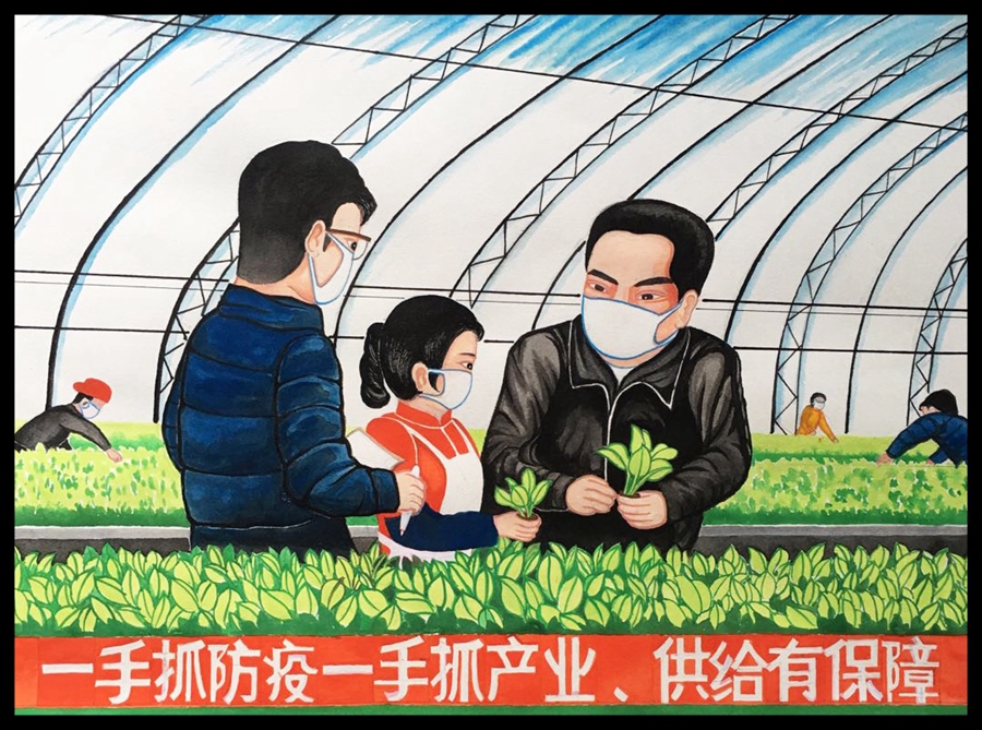 《一手抓防疫,一手抓產(chǎn)業(yè)》 楊奕護(hù) 繪