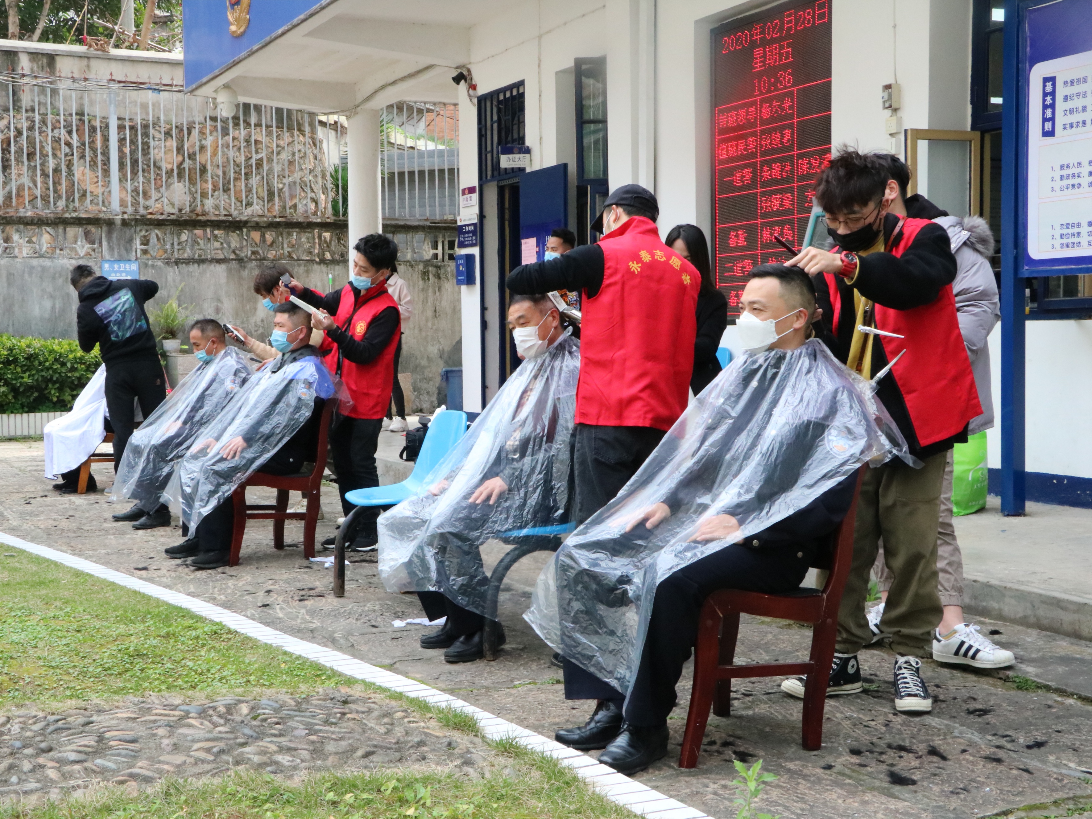 文明風(fēng)3月2日訊 在疫情防控關(guān)鍵期,理發(fā)這件平常最簡單的事兒,卻成了一件有難度的事情。2月28日,由多名“80后”、“90后”組成的愛心義剪志愿者團(tuán)隊(duì)來到永泰縣城關(guān)派出所,義務(wù)為戰(zhàn)斗在抗擊新冠肺炎疫情一線的公安民輔警理發(fā)。