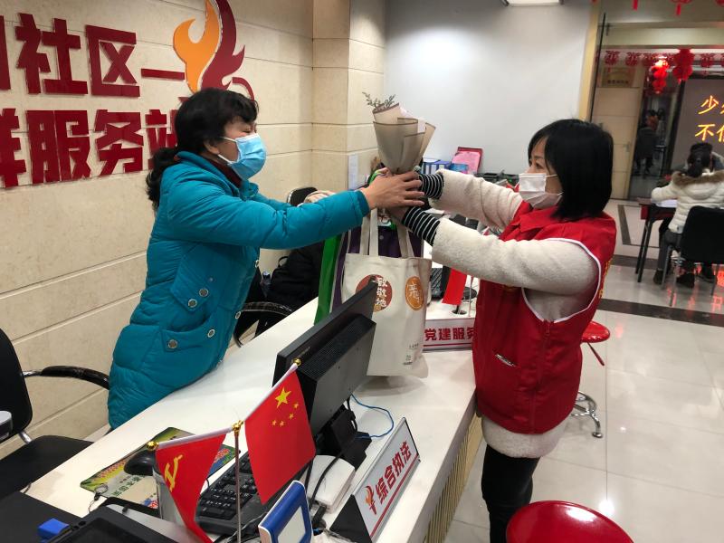 臺江志愿者為社區(qū)女性工作者送上鮮花 臺江區(qū)委文明辦供圖