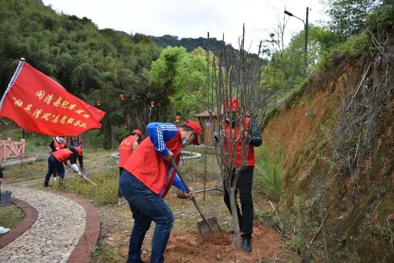 紀(jì)委監(jiān)委志愿者們分工合作,配合默契,同心協(xié)力種新苗 閩清縣委文明辦供圖