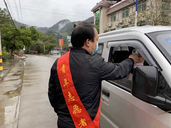 林光明對(duì)過往人員進(jìn)行體溫測(cè)量 南埕新時(shí)代文明實(shí)踐所供圖