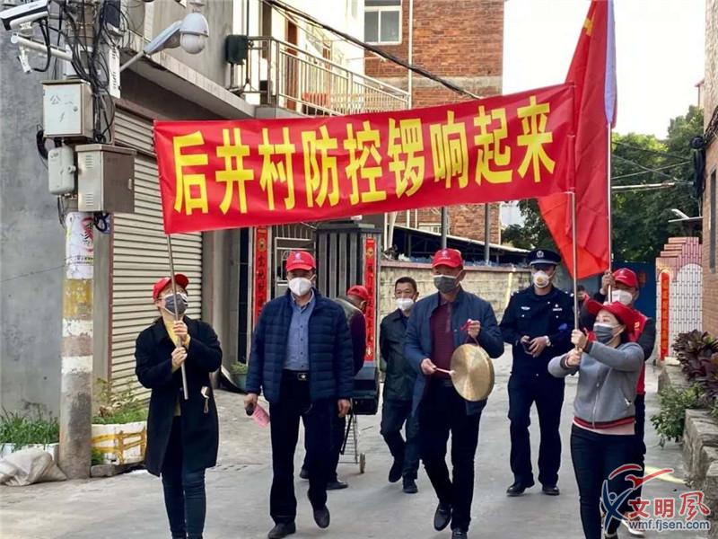 “各位阿公阿嫲,阿伯阿嬸,賣出去趴趴跑,賣出去辣辣蛇……”這是在網(wǎng)上流傳甚廣的一則閩南語版防疫順口溜,由后井村計生協(xié)會常務(wù)專職副會長、黨員、網(wǎng)格員蔡惠紅錄制,她也因此成了網(wǎng)紅“大聲公”。這段順口溜在村里用最原始的固定“大喇叭”播放,采用車載廣播、流動宣傳隊等接地氣的宣傳方式,用鄉(xiāng)音向村民普及防控知識,將防疫落到實處。