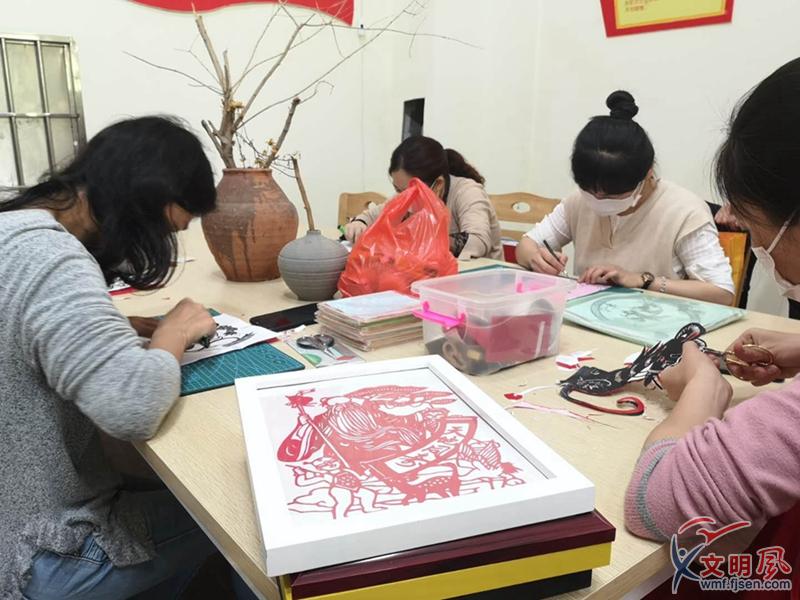 社區(qū)居民在鳳祥社區(qū)新時(shí)代文明實(shí)踐站里剪紙。東南網(wǎng)鄒玒攝