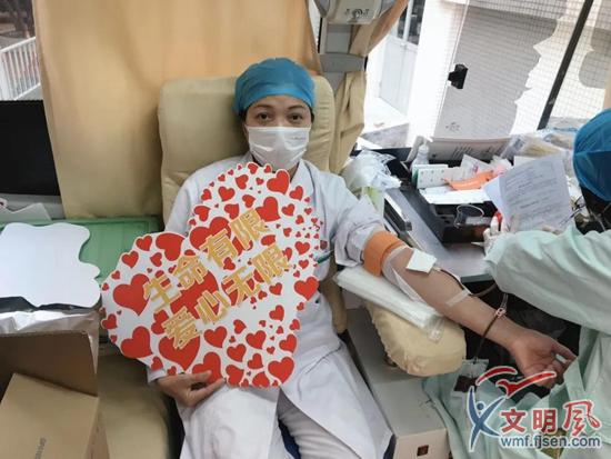 醫(yī)護(hù)人員加入獻(xiàn)血的隊(duì)伍。同安區(qū)委文明辦供圖