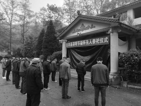 4月4日,全館工作人員古田縣鳳梅亭殯儀館舉行默哀儀式。古田縣文明辦 供圖