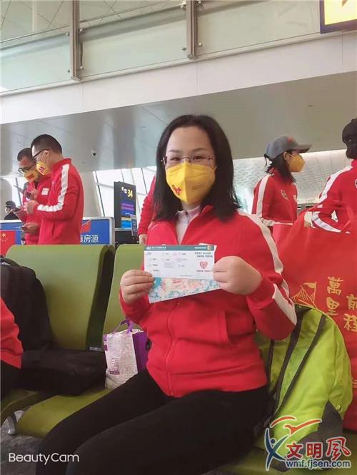 援鄂結(jié)束,盧珍珍坐上了回家的飛機。(受訪者供圖)