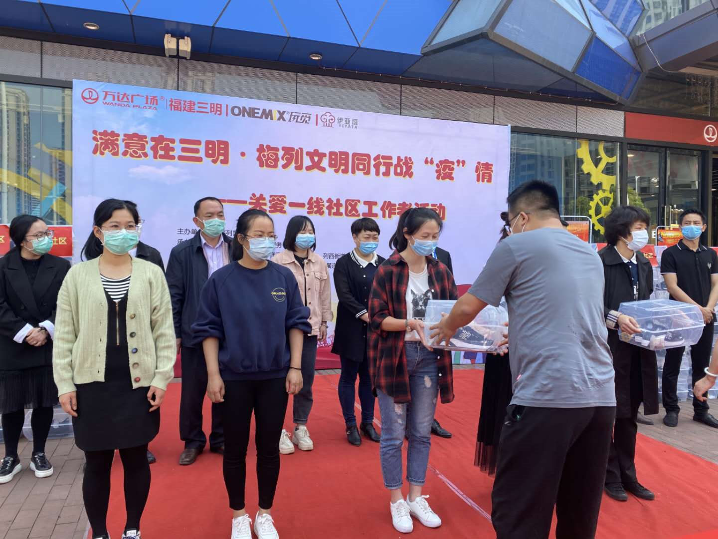 文明風(fēng)4月21日訊 (通訊員賴虬熔) 4月17日上午,梅列區(qū)“滿意在三明·梅列文明同行戰(zhàn)疫情——關(guān)愛一線社區(qū)工作者活動(dòng)”在三明萬達(dá)廣場(chǎng)舉行。活動(dòng)由梅列區(qū)委文明辦主辦、三明市心力量社會(huì)工作服務(wù)中心承辦和團(tuán)區(qū)委、各鎮(zhèn)街協(xié)辦,轄區(qū)各鎮(zhèn)街、社區(qū)一線工作者代表30余人參加。