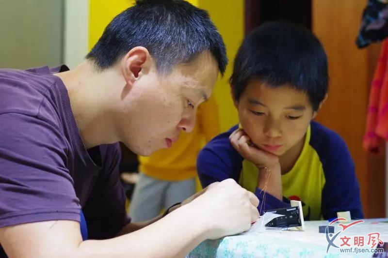 社工提前為親子們發(fā)放了材料包,還特地提前拍攝制作了電磁秋千指導(dǎo)制作過程的視頻供親子們反復(fù)觀看學(xué)習(xí)。在動手制作過程中,親子們一邊觀看視頻一邊動手制作??雌饋砣菀?,做起來難,雖然秋千的大致制作流程都能順利完成,但是有部分親子卻都遇到了秋千無法啟動的情況,經(jīng)過社工的鼓勵與指導(dǎo),他們也都能夠毫不氣餒積極應(yīng)對,直到問題解決。最終在社工的指導(dǎo)與幫助下,親子們共同合作完成了電磁秋千的制作,并且將制作過程上傳到線上社群。