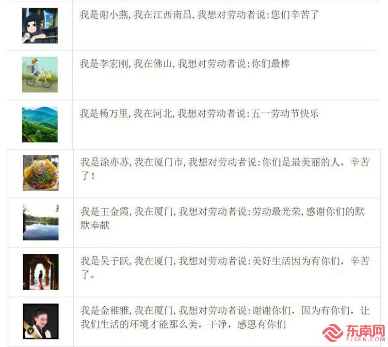 點贊勞動者活動留言截圖1(思明區(qū)委文明辦供圖)
