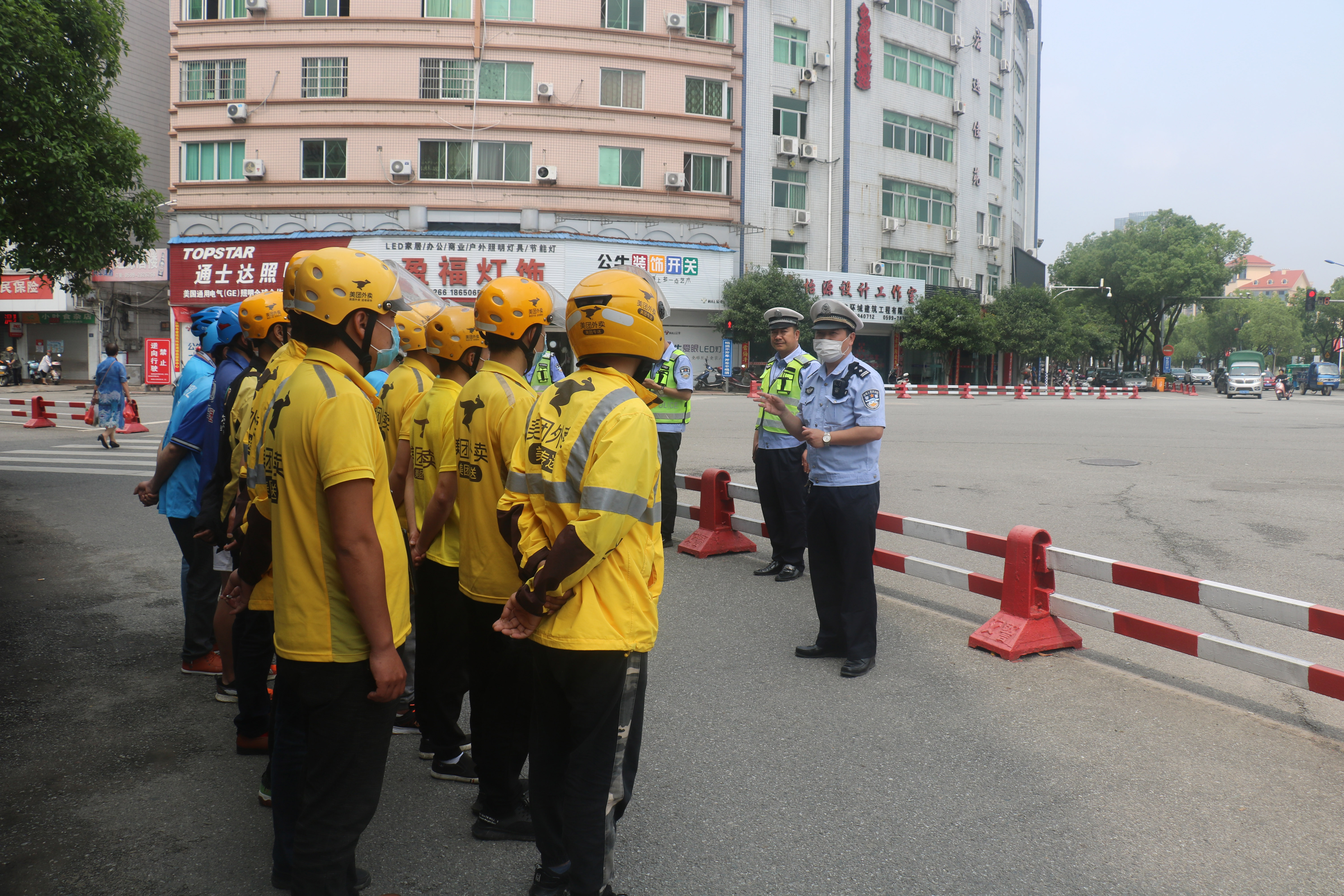 在大圓弧交警崗?fù)で?,“美團(tuán)”和“餓了么”外賣騎手列隊(duì)聽取民警講授交通安全知識。為切實(shí)提升“騎手們”的交通安全意識,大隊(duì)民警詳細(xì)指導(dǎo)和講解外賣騎手戴頭盔的安全細(xì)節(jié),向外賣騎手示范如何正確佩戴安全頭盔,并教育引導(dǎo)外賣騎手們在工作期間務(wù)必要戴好頭盔,駕駛時切勿分心觀看手機(jī),做到安全文明出行。