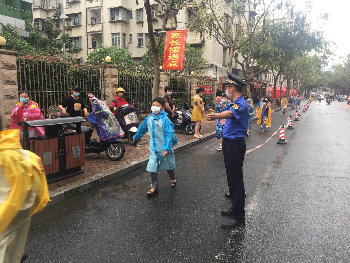 5月11日起,小學(xué)三至六年級(jí)開始復(fù)學(xué),為做好校園周邊上學(xué)、放學(xué)期間的疫情管控,確保學(xué)生順利復(fù)課。11日、12日,龍海市交通運(yùn)輸局聯(lián)合山后社區(qū)居委會(huì),組織十余名干部職工在石碼中心小學(xué)新校區(qū)開展交通勸導(dǎo)志愿服務(wù)活動(dòng)。志愿者們手拿小紅旗,有的負(fù)責(zé)疏導(dǎo)交通,指揮接送學(xué)生車輛有序通行,不聚集,即接即送即走;有的負(fù)責(zé)引導(dǎo)學(xué)生有序過(guò)馬路、有序進(jìn)出校園。積極協(xié)助學(xué)校進(jìn)行秩序引導(dǎo),為學(xué)校復(fù)學(xué)提供全方面服務(wù),有效地保持校園周邊的道路通暢,維護(hù)學(xué)校周邊交通安全,他們的熱情服務(wù)獲得學(xué)校及家長(zhǎng)一致好評(píng)。(龍海市委文明辦綜合)