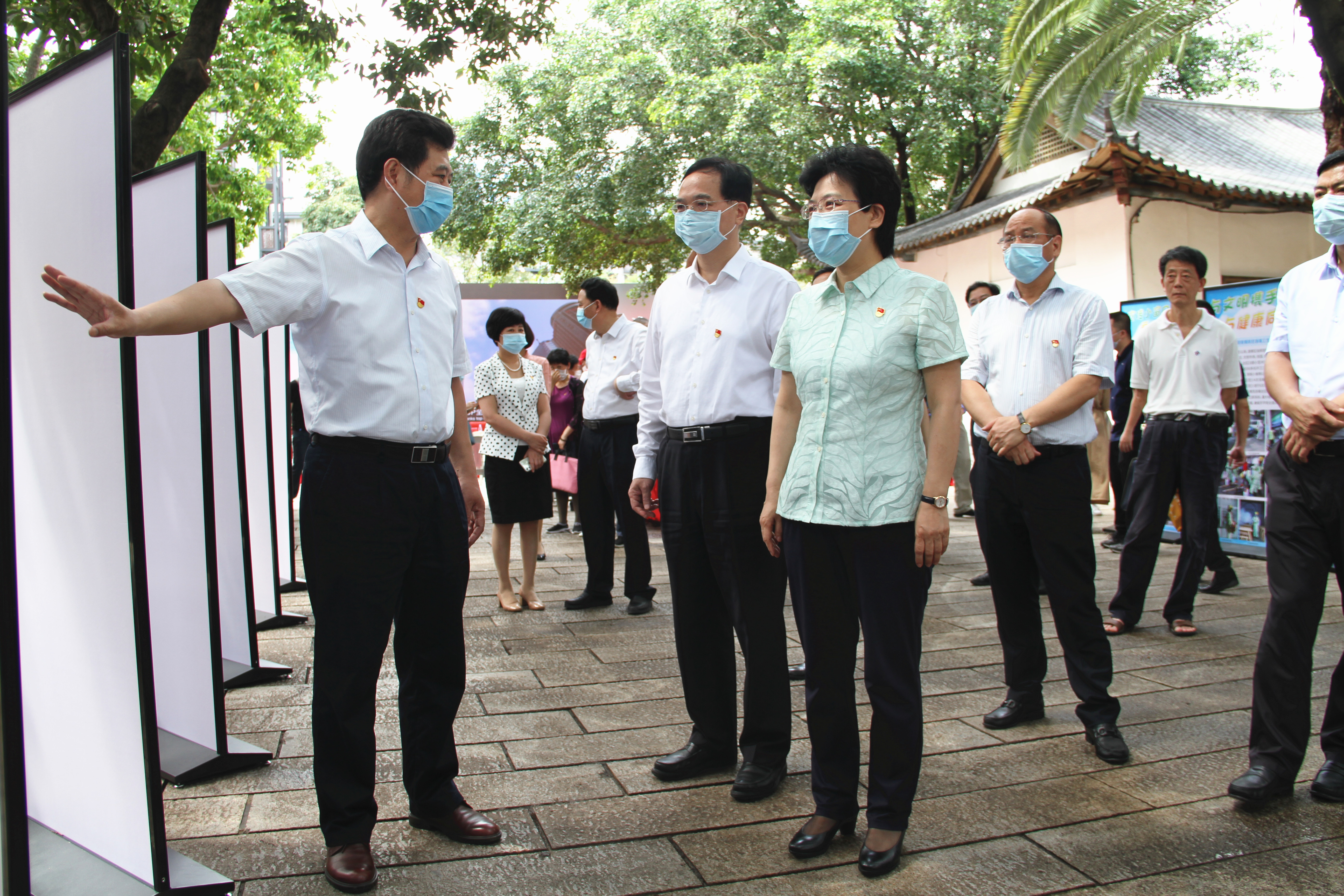 現(xiàn)場(chǎng)領(lǐng)導(dǎo)參觀愛(ài)衛(wèi)活動(dòng)展板 福州市委文明辦翁咪 攝