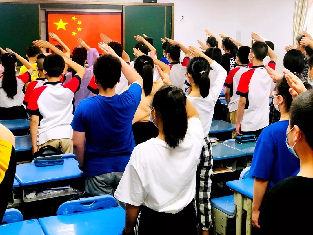 復(fù)學(xué)思政第一課。升國(guó)旗,唱國(guó)歌,旗手冉冉升起五星紅旗。連江東湖中心小學(xué)全體少先隊(duì)員在教室里,面向班級(jí)國(guó)旗,立正敬禮,目光專注,歌聲嘹亮,東小少年滿心歡喜迎接新學(xué)期的的到來(lái)!
