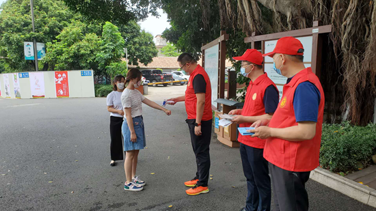 志愿者協(xié)助測量體溫 泉州市紀委監(jiān)委供圖