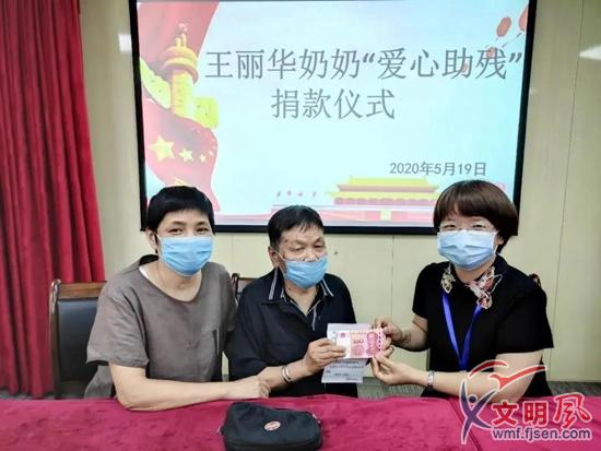 近日,江頭街道江華社區(qū)居民、87歲的老黨員王麗華來到江華社區(qū)居委會,親手將10099元現(xiàn)金交給了社區(qū)工作人員,請他們代為轉(zhuǎn)交。在媒體與王麗華家人的共同見證下,江華社區(qū)工作人員協(xié)助王麗華完成了線上捐款,將10099元善款轉(zhuǎn)入了騰訊公益平臺上的“愛心助殘,圓夢微心愿”項目中。這些錢都是王麗華從自己的積蓄和退休工資中節(jié)省下來的,之所以有99元的零頭是已有64年黨齡的她向建黨99周年獻(xiàn)禮。