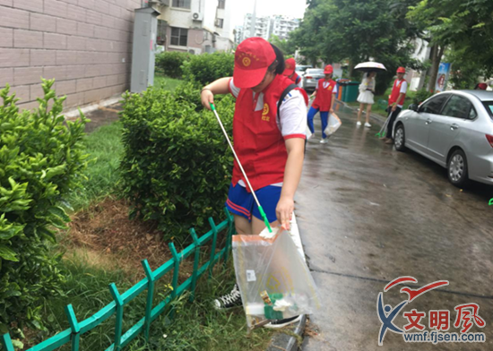 指導(dǎo)站組織孩子們開展“潔凈家園”行動。湖里區(qū)委文明辦供圖