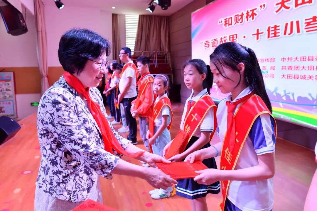 大田縣委常委宣傳部長(zhǎng)黃芳給十佳小孝星頒獎(jiǎng) 大田縣委文明辦供圖