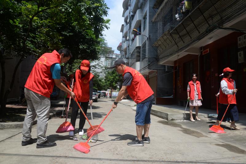 在三福社區(qū),志愿者們深入大街小巷開展清潔家園志愿服務(wù)行動(dòng),陳楓攝影