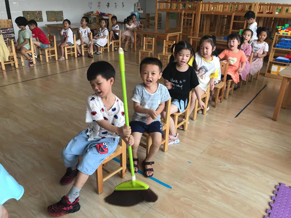 安溪縣第九幼兒園小朋友們正在模仿龍舟比賽。陳宇瑩 供圖